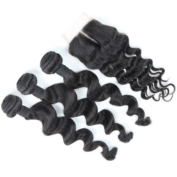 8A Virgin Hair loose wave 3 & 4 bundles with closures your choose free, middle, or three.